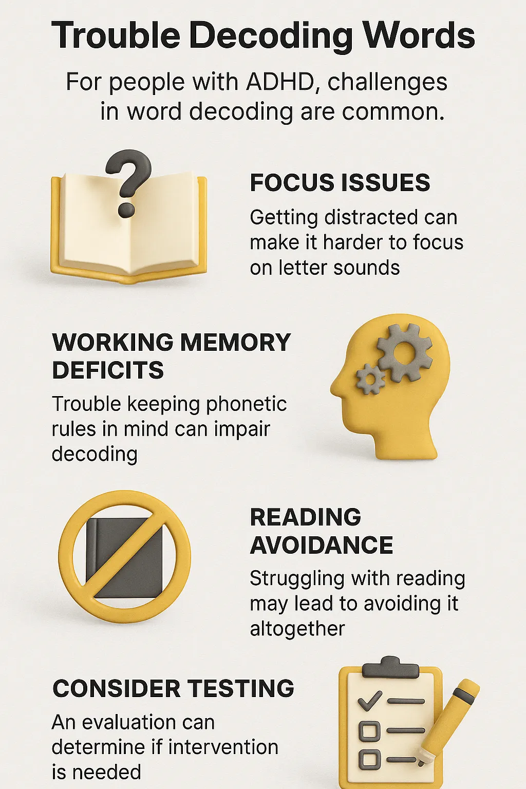 ADHD can make reading feel harder than it should. This medically reviewed guide explains the brain-based reasons behind decoding struggles and offers everyday techniques that make reading less stressful.